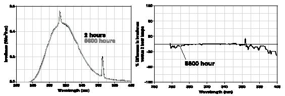在QUV老化箱內(nèi)部,因熒光紫外線燈固有的光譜穩(wěn)定性,發(fā)光控制系統(tǒng)相對簡單。隨著燈管的老化,所有光源的輸出都會發(fā)生衰減。然而,不像大多數(shù)其它類型的燈管紫外燈的光譜不會隨時間變化。這也提高了測試結果的重復性,也是使用QUV進行測試的一個主要的優(yōu)點。